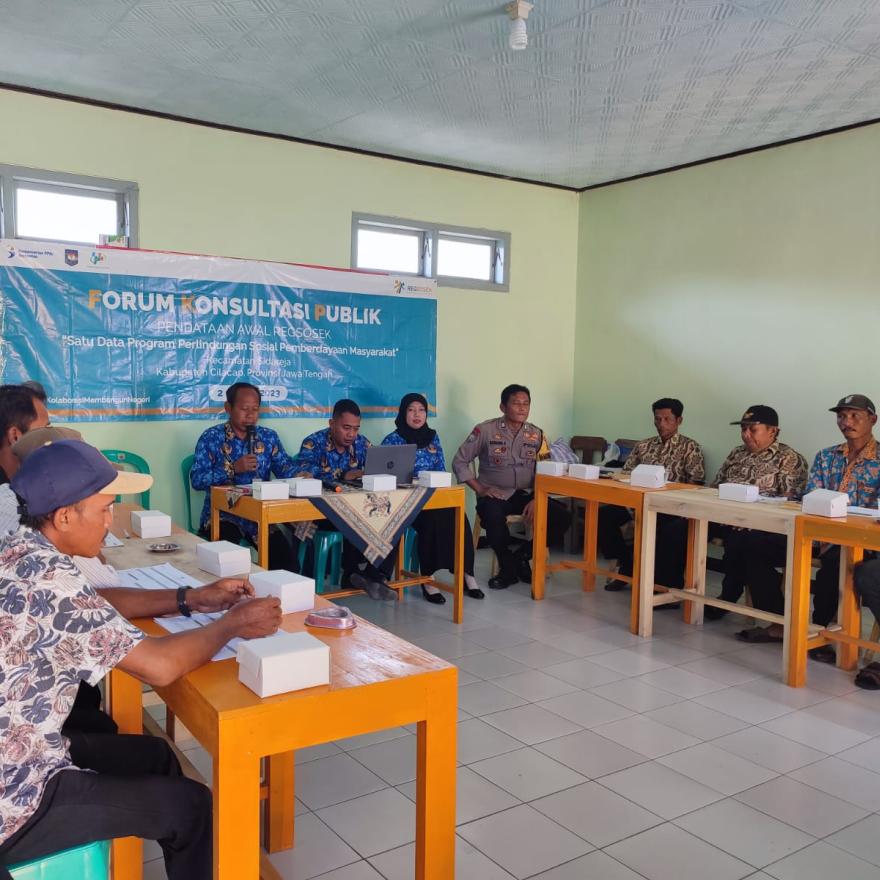Forum Konsultasi Publik (FKP) Registrasi Sosial Ekonomi (Regsosek) Tahun 2023 telah terlaksana di Desa Gunungreja, Kecamatan Sidareja, Kabupaten Cilacap pada hari ini Rabu tanggal 17 Mei 2023.