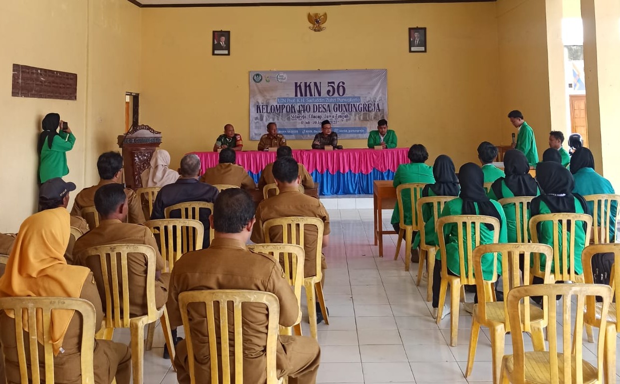 Gunungreja, 14 Juli 2025 — Kuliah Kerja Nyata (KKN) ke-56 Universitas Islam Negeri (UIN) Prof. K.H. Saifuddin Zuhri (Saizu) Purwokerto resmi dibuka pada hari Senin, 14 Juli 2025 di Balai Desa Gunungreja, Kecamatan Sidareja, Kabupaten Cilacap. Kegiatan ini menandai dimulainya pengabdian mahasiswa kepada masyarakat yang akan berlangsung selama 40 hari ke depan.