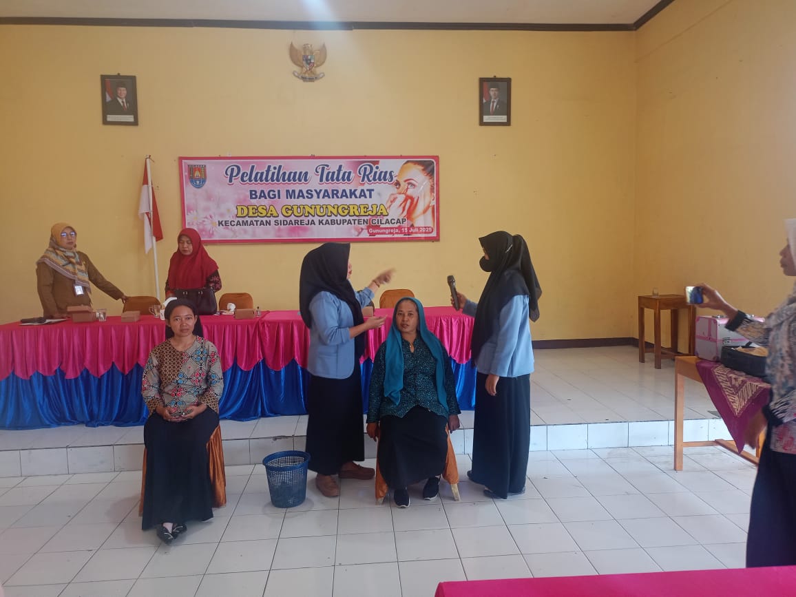 Gunungreja, 15 Juli 2025 – Pemerintah Desa Gunungreja menyelenggarakan Pelatihan Tata Rias (Make Up) bagi masyarakat yang bertempat di Aula Balai Desa Gunungreja pada Selasa, 15 Juli 2025. Kegiatan ini dilaksanakan sebagai upaya meningkatkan keterampilan warga, khususnya dalam bidang tata rias, yang diharapkan dapat menjadi peluang usaha dan sumber penghasilan baru.