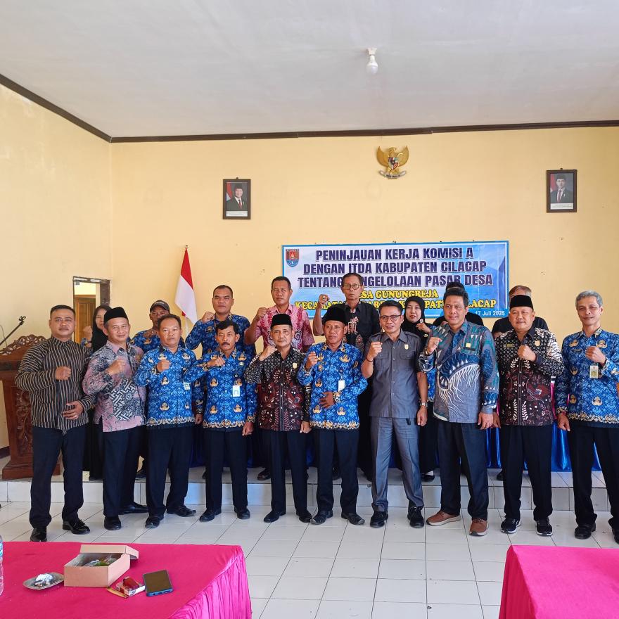 Gunungreja, 17 Juli 2025 — Komisi A DPRD Kabupaten Cilacap bersama Inspektorat Daerah (ITDA) melaksanakan kunjungan kerja ke Desa Gunungreja, Kecamatan Sidareja, dalam rangka meninjau dan membahas pengelolaan pasar desa. Kegiatan ini berlangsung di Balai Desa Gunungreja dan dihadiri oleh unsur Komisi A DPRD, perwakilan dari Inspektorat, Dinas Lingkungan Hidup (DLH) Sidareja, Ketua Pasar Karna dan Ketua Pasar Setuan, serta jajaran perangkat Desa Gunungreja.